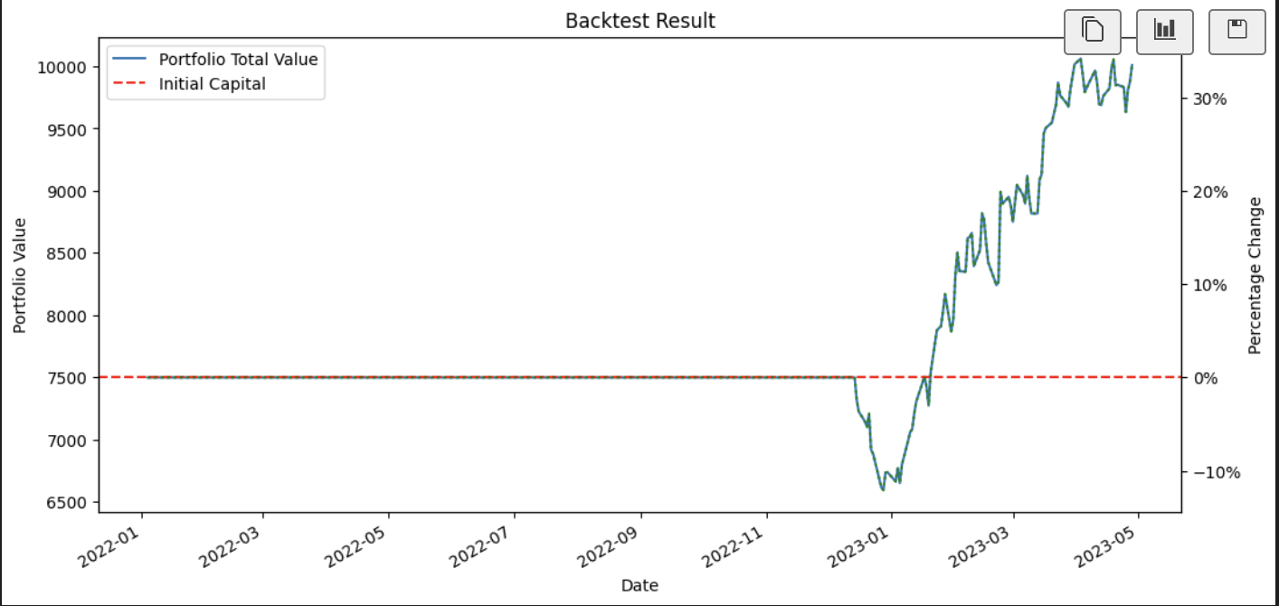 이를 코로나 이후 시점부터 지금까지 대략 2022년도~현재 까지 설정하여 backtest를 진행해보았다.